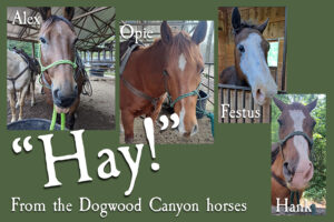 If you are interested in one of our horseback rides, you can click here for more information and be sure to say “hay!” to Hank, Alex, Festus, or Opie if you see them!